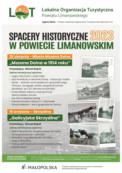 Region. Lokalna Organizacja Turystyczna Powiatu Limanowskiego zaprasza na spacery historyczne w Mszanie Dolnej i Skrzydlnej